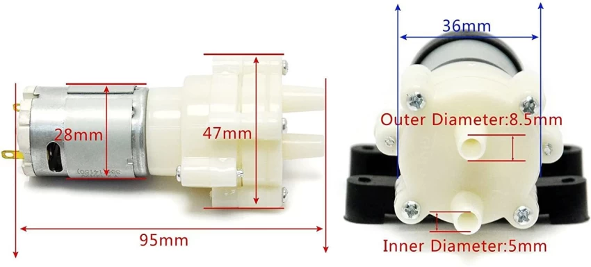 پمپ آب R385، قابلیت انتقال 1.5 تا 2 لیتر مایعات در هر دقیقه را دارد و توان مکش آن نیز 2 لیتر می باشد. این پمپ علاوه بر پمپاژ مایعات روان، امکان پمپاژ مایعات با وسیکوزیته بالا را نیز دارد.